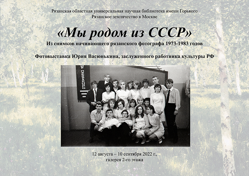 В галерее второго этажа начала свою работу персональная фотовыставка Юрия Васюнькина — заслуженного работника культуры РФ, почетного работника печати и средств массовой информации Рязанской области, члена Союза писателей России, члена Союза журналистов России — «Мы родом из СССР».