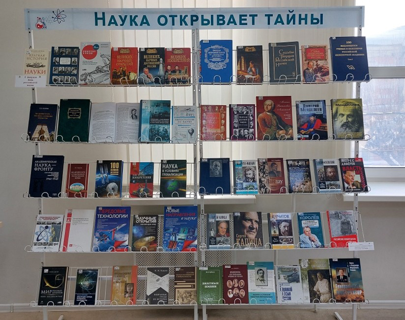 На книжной выставке экспонируются издания, посвященные истории развития и становления российской науки, выдающимся ученым и их великим открытиям, а также книги о направлениях развития современной науки.