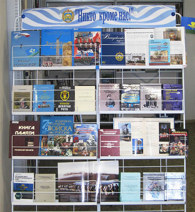 На выставке представлены издания об истории создания училища, об известных выпускниках; монографии преподавателей в серии «Наши истоки»; книги, посвященные памяти десантников, погибших в горячих точках нашей страны.