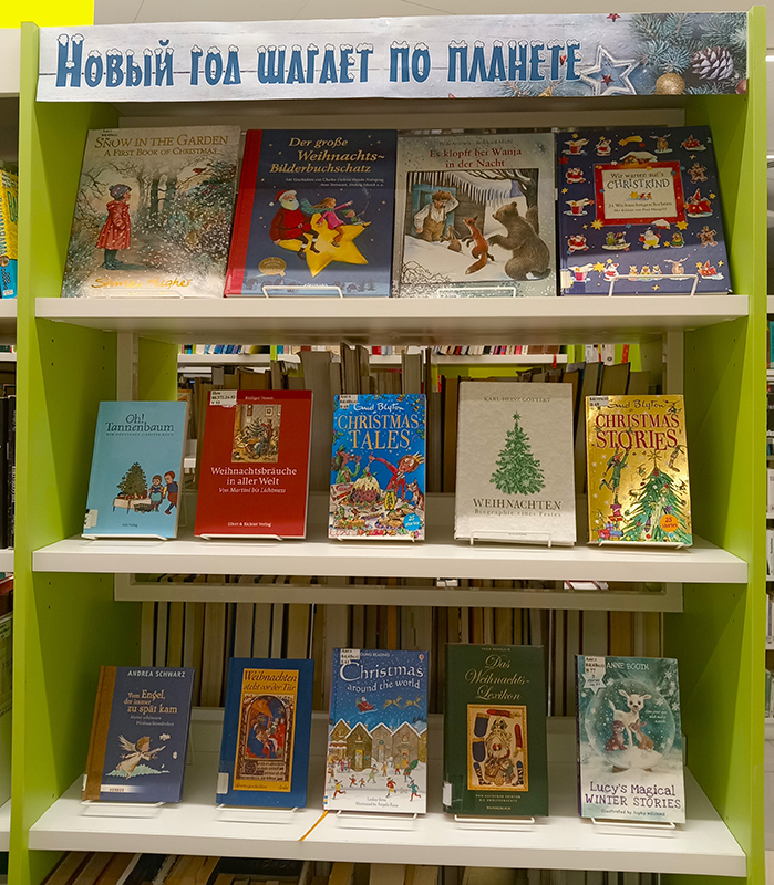 Книжная выставка в центре межкультурных информационных ресурсов на иностранных языках предлагает читателям познакомиться с традициями празднования Нового года и Рождества в разных странах мира. Истории классических и современных писателей на новогоднюю тематику помогут узнать, какие новогодние сувениры пользуются популярностью в различных уголках нашей планеты, как украшают дома и какие блюда ставят на праздничный стол. Погрузитесь в атмосферу праздника и откройте для себя новые книги, которые подарят вам сказочное настроение!