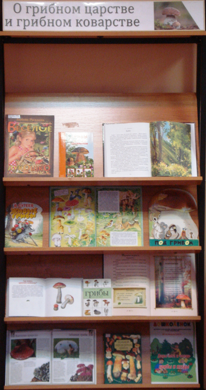 Кафедра детской литературы приглашает читателей посетить выставку, посвященную грибной поре. Что мы знаем о грибах? Ученые выделили их в отдельную группу живых существ − царство грибов. И оказывается, на Земле существует около пяти миллионов видов различных грибов. Это − лишайники, плесень, дрожжи. Ну и, естественно, сами грибы.