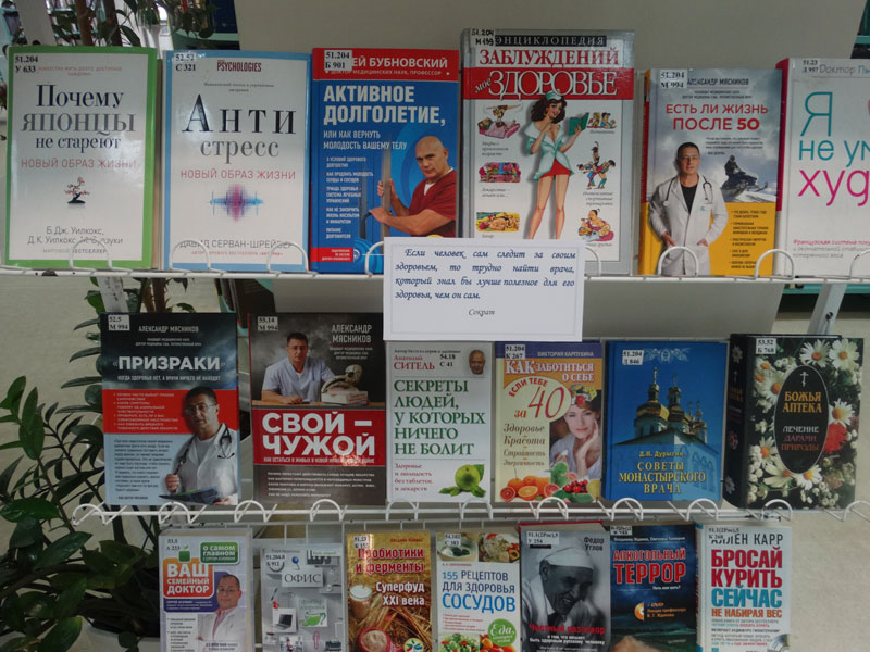 Книги, представленные на выставке, помогут вам научиться ценить, сохранять и укреплять здоровье. Вы узнаете об уникальных методиках оздоровления организма, о том, как избавиться от вредных привычек. Особенно важны советы для родителей о том, как оградить своих детей от пагубных привычек.
