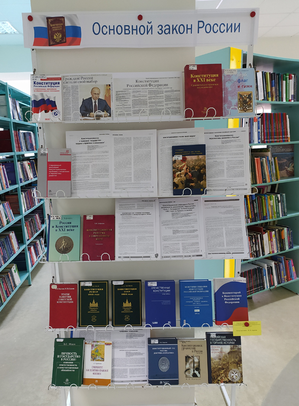 На выставке представлены тексты Конституций Российской Федерации, действовавших на территории России в разное время,книги, посвященные истории создания Конституции.