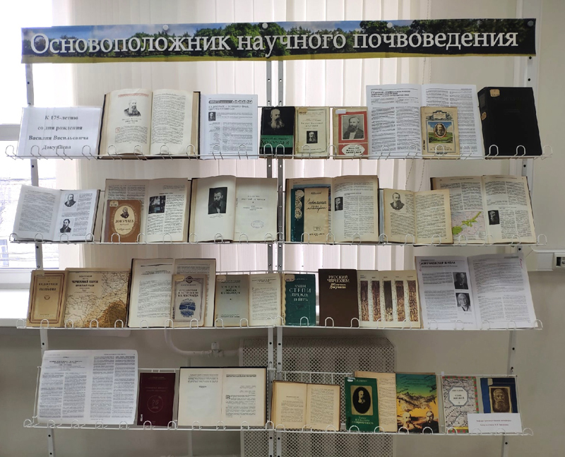 Выставка посвящена 175-летию со дня рождения выдающегося русского естествоиспытателя, ученого-почвоведа Василия Васильевича Докучаева. Его жизнь была недолгой, но он оставил огромное научное и эпистолярное наследство: труды в девяти томах.