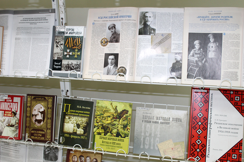 В универсальном читальном зале организована книжная выставка «Первая мировая война. Взгляд из XXI века», посвященная этой памятной дате. На выставке представлены книги и периодические издания об эпохе того времени, о причинах возникновения войны, об участии России в боевых действиях, а также о героях-россиянах, проявивших личную храбрость на полях сражений.