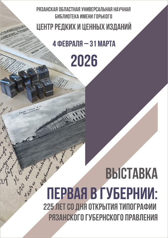 4 февраля в центре редких и ценных изданий начинает работу выставка, приуроченная к значимой дате – 225-летию со дня открытия типографии Рязанского губернского правления.