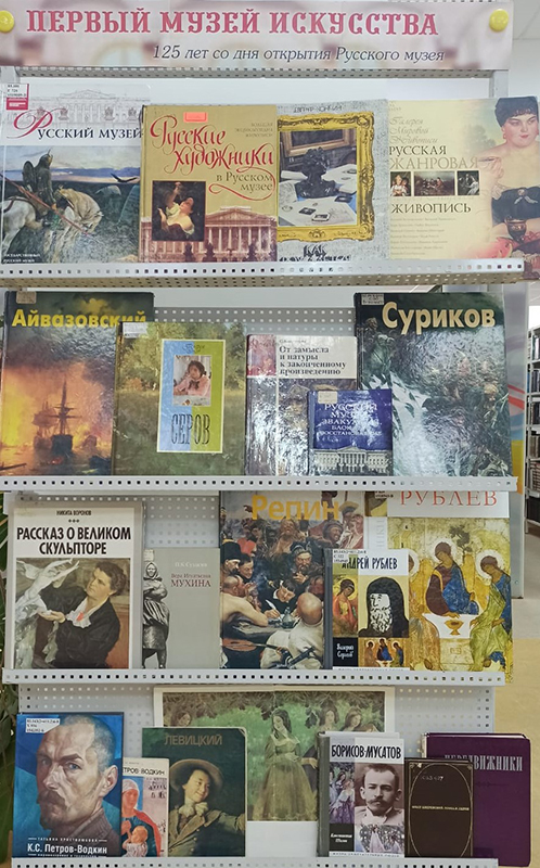 С 16 по 30 апреля в центре книги и чтения работает выставка, посвященная 125-летию со дня открытия Русского музея. Посетители cмогут ознакомиться с книгами о знаменитых произведениях великих русских художников.