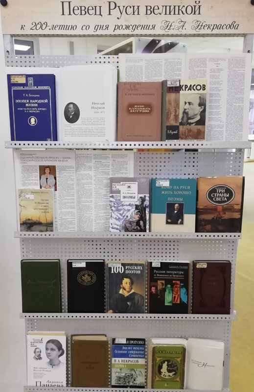 На выставке в Центре книги и чтения представлены материалы о жизни и творчестве Николая Алексеевича Некрасова, о его работе в литературных журналах, воспоминания современников и художественные произведения писателя.