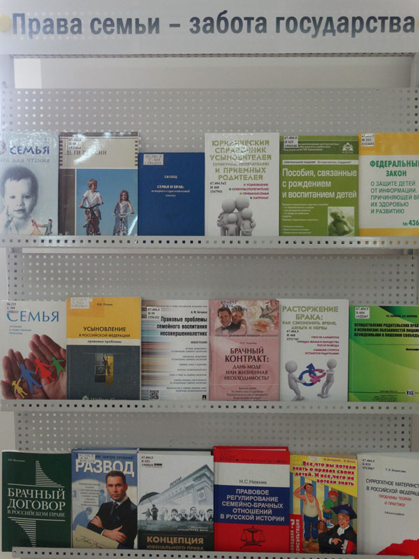 В Центре книги и чтения с 1 по 15 июля будет работать выставка, посвященная разнообразным правовым и социальным аспектам жизни семьи.