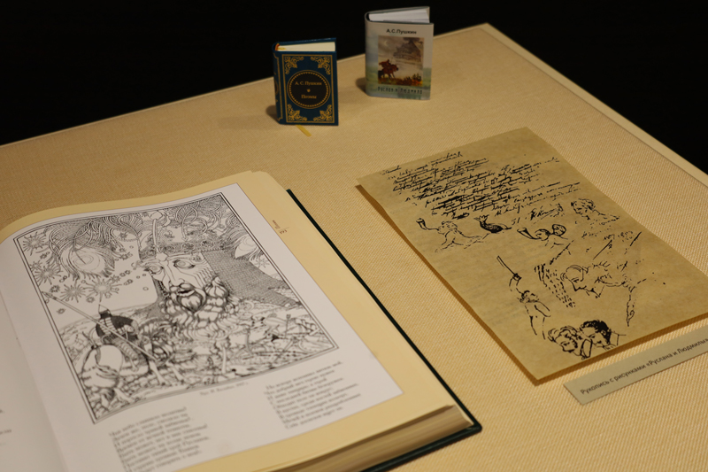 На выставке представлены издания «Руслана и Людмилы» XIX–XXI веков. Особый интерес представляет факсимильное издание поэмы 1820 года. Читатели смогут также увидеть иллюстрации к произведению, созданные выдающимися русскими и советскими художниками.
