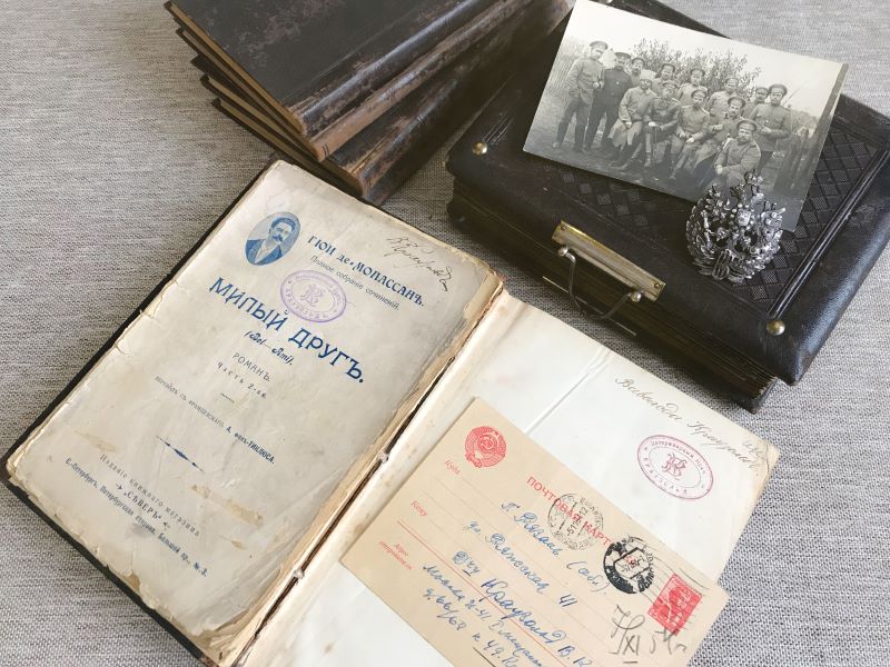 Экспозицию дополняют фотографии и документы из семейного архива Краузольд, предоставленные для экспонирования Н. М. Корсаковой.