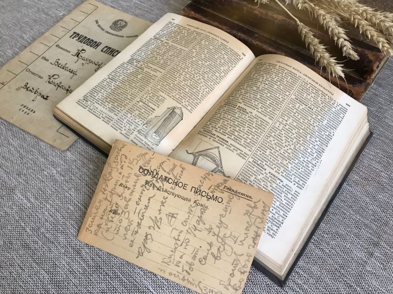 На выставке представлены практические руководства, словари и справочники по ветеринарии и сельскому хозяйству из личной библиотеки В. К. Краузольда. В их числе – учебник фармакологии для ветеринарных врачей и студентов профессора Высшей ветеринарной школы в Берлине Ойгена Фрёнера, изданный в Юрьеве в 1897 году, «Краткое руководство для ковки лошадей с правильными, неправильными и больными копытами» преподавателя иппологии Оренбургского казачьего юнкерского училища Михаила Цареградского, вышедшее в Оренбурге в 1894 году, и иллюстрированное «Руководство к определению качества сена для офицеров, ветеринарных врачей и сельских хозяев», составленное преподавателем Интендантской академии Дмитрием Девелем и изданное в Санкт-Петербурге в 1914 году. Принадлежавший В. К. Краузольду «Сельскохозяйственный словарь-справочник», выпущенный в Москве в 1934 году под редакцией экономиста-аграрника Арона Гайстера, интересен вложенным в него в качестве закладки открытым солдатским письмом из действующей армии с наспех записанной на нем Всеволодом Константиновичем технологией устройства силосных ям.