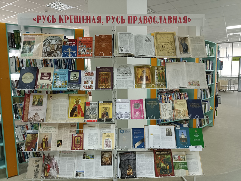 В универсальном читальном зале работает книжная выставка «Русь крещеная, Русь православная», посвященная 1035-летию крещения Киевской Руси князем Владимиром. На выставке представлена литература о дохристианской Руси, об обычаях и верованиях древних славян, о жизни и деятельности Великого Князя Владимира, исследования о крещении Древней Руси, ее международных связях.