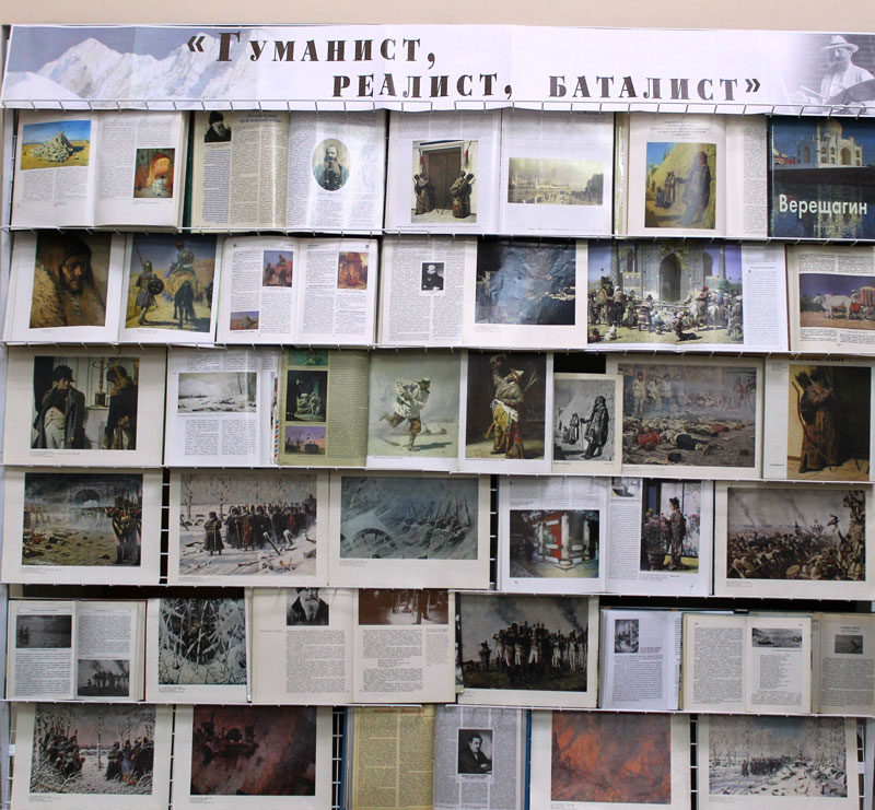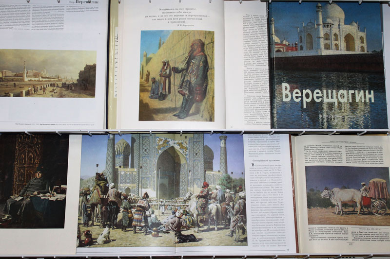 Читателей ждет встреча с книгами и альбомами известных серий: «Великие художники», «Самые знаменитые», «Белый город», освещающих творческий путь баталиста. Любители путешествий и исследователи культуры других народов познакомятся с уникальным изданием Л.М. Демина «Мир глазами В.В. Верещагина».