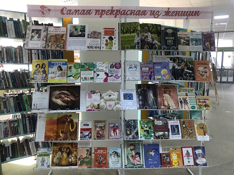 В универсальном читальном зале работает книжная выставка «Самая прекрасная из женщин» (ко Дню матери в России). В экспозиции представлены книги, посвященные мамам: издания об охране материнства и детства, о воспитании детей, художественная литература.