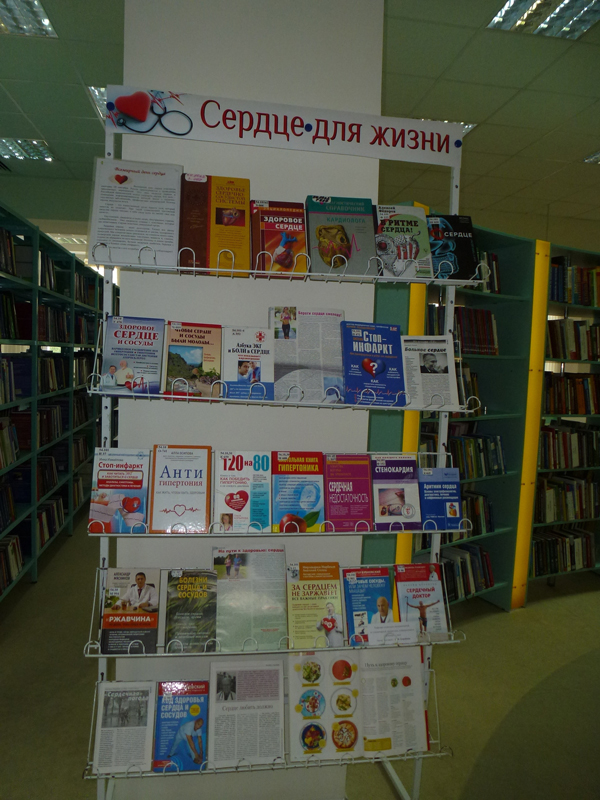 На выставке представлены книги, рассказывающие о том, как узнать, что сердце в опасности, как избежать сосудистой катастрофы, о методах диагностики и лечения, гимнастике для сердца и сосудов – все о том, как сохранить свою сердечно-сосудистую систему здоровой до глубокой старости.
