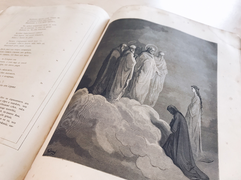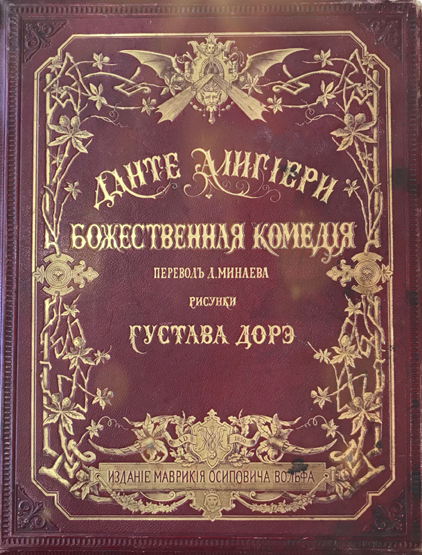Поражает роскошью подарочное Вольфовское издание «Божественной комедии» Данте (СПб., 1874–1879) с 87 иллюстрациями Доре, дополняющими и поясняющими различные эпизоды путешествия итальянского поэта в загробный мир. «Своим художественным чутьем и глубоким изучением великого произведения Данте, – писали критики, – французский художник возвысился до красот самой поэмы, уловив все оттенки поэтической мысли и совершенно дантовский колорит “Комедии”... Художественный карандаш Доре, давно уже приобретший себе громкую известность во всей Европе, не только украсил и пояснил, но и воспроизвел в другой форме великую итальянскую трилогию, и с такой же поэтической силой и красотой начертил ее в картинах, с какой Данте создал в своих могучих стихах». До сих пор знаменитая поэма для многих ассоциируется именно с графикой французского мастера.
