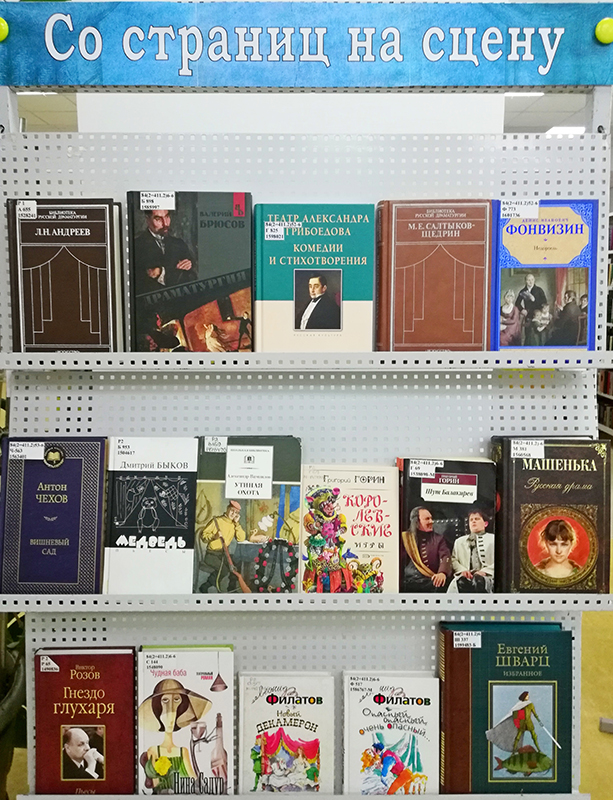 На книжной выставке в Центре книги и чтения представлены лучшие классические произведения отечественной и зарубежной литературы, пьесы современных писателей, которые легли в основу спектаклей, отыгранных бесчисленное множество раз на самых знаменитых театральных сценах.