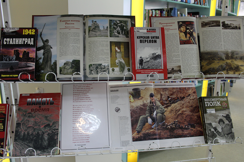 На выставке представлены исторические и художественные книги о Великой Отечественной войне, о ее самых кровопролитных сражениях, о той правде, о которой редко говорят, о солдатах, бессмертие которых увековечено в памятниках и мемориалах.