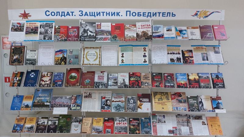 К этой дате оформлена книжная выставка, на которой представлены книги, рассказывающие о героизме и мужестве защитников нашей страны в разные исторические эпохи, о славных победах российских войск, сыгравших решающую роль в истории Отечества.