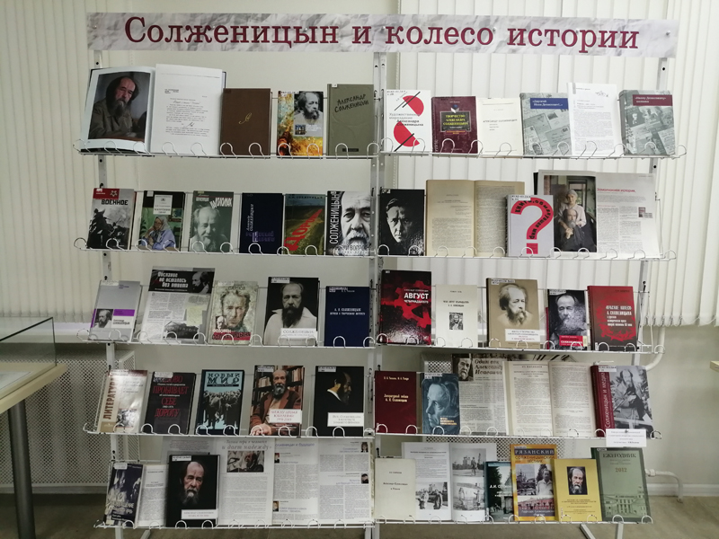 В универсальном читальном зале работает книжная выставка «Солженицын и колесо истории». На ней представлена литература о жизни и творчестве писателя, его художественные и публицистические работы, статьи из периодических изданий.