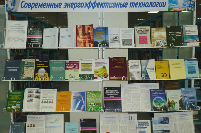 На выставке представлены книги и журнальные статьи, раскрывающие вопросы эффективного использования топливно-энергетических ресурсов в различных отраслях промышленности и сельского хозяйства, а также вовлечения в хозяйственный оборот возобновляемых источников энергии.