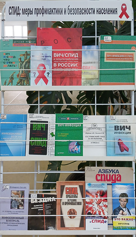 На выставке представлена литература, которая рассказывает о ВИЧ-инфекции и СПИДе: чем они отличаются, как развиваются эти заболевания, что может сделать человек, чтобы предотвратить их распространение и защитить себя.
