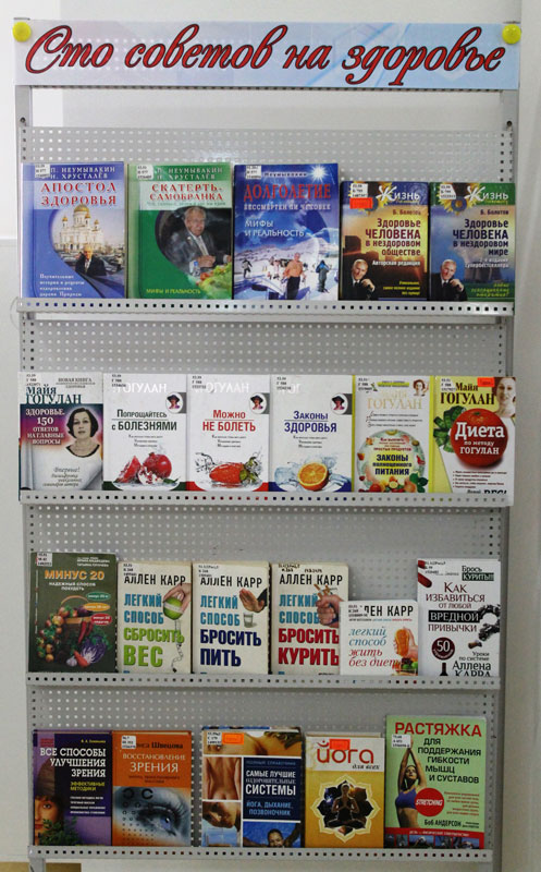 С 1 по 15 августа в Центре книги и чтения будет работать выставка «Сто советов на здоровье». В книгах, представленных на ней, читатель может найти информацию о том, как нужно заботиться о своем здоровье, чтобы не болеть и быть крепким, о правильном питании, о вредных привычках с рекомендациями по их профилактике, о том, как сберечь зрение.