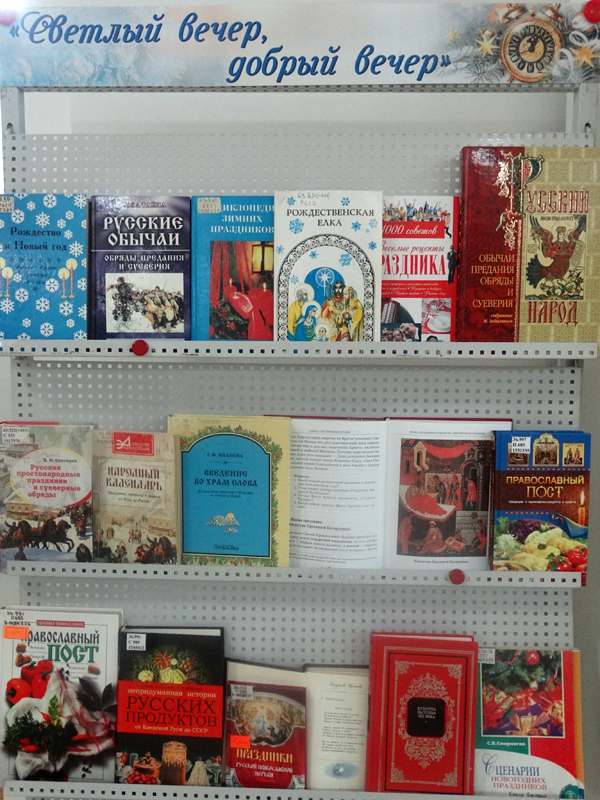 В Центре книги и чтения открыта выставка, рассказывающая об обычаях и традициях празднования Нового года и Сочельника, о Рождественских гуляньях. Лучшими помощниками в составлении меню и оформлении праздничного стола станут книги национальной кухни и кухни народов России.