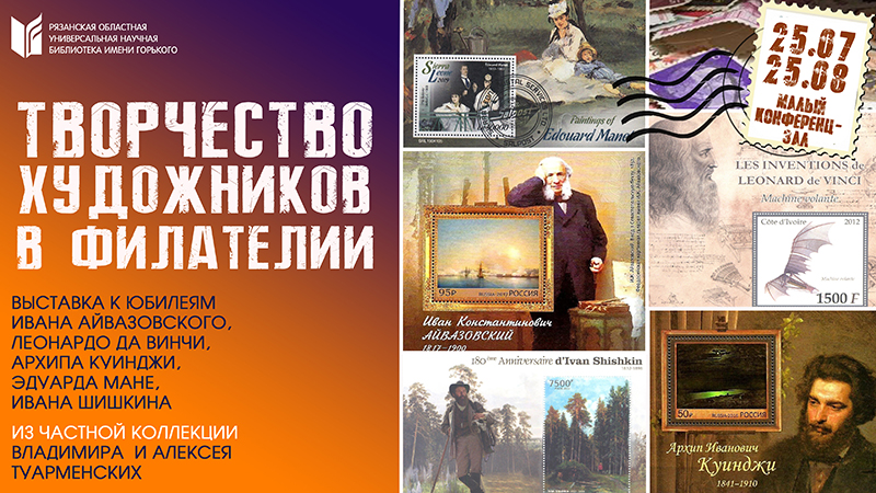 В областной библиотеке имени Горького 25 июля начнет свою работу выставка «Творчество художников в филателии», приуроченная к юбилеям известных художников.