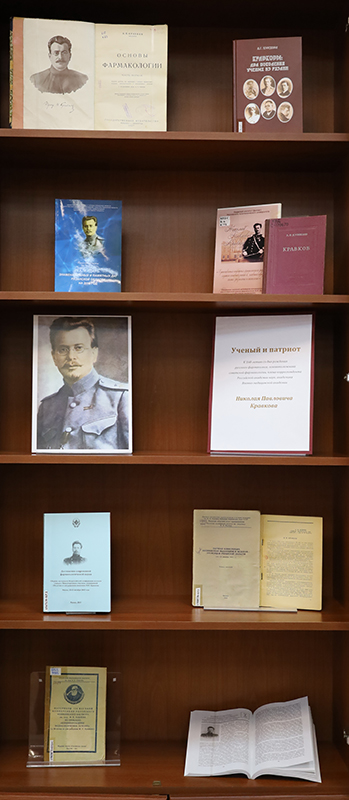 На выставке представлены сборники материалов научных конференций, книги, рассказывающие о жизни и творческой деятельности Н.П. Кравкова. Роду Кравковых посвящена книга Д.Г. Узбековой «Кравковы: два поколения ученых из Рязани». Интересные факты биографии и творческой деятельности Н.П. Кравкова изложены в книге И.А. Кузнецова «Н.П. Кравков».