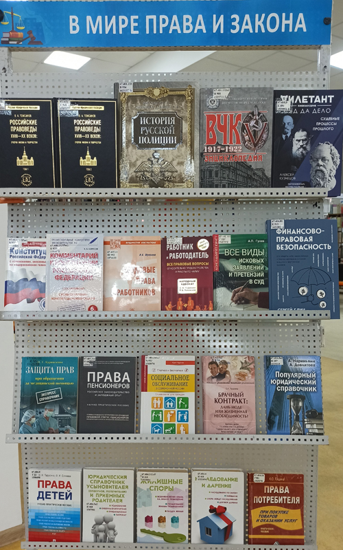 Центр книги и чтенияВ современном мире правовая грамотность – не привилегия юристов, а необходимость для каждого гражданина. Знаете ли вы, какие права у вас есть как у работника? Как защитить свои интересы, если продавец отказывается принять бракованный товар? Что говорит закон о правах детей и родителей? Выставка поможет разобраться в своих правах и обязанностях; узнать, как защитить свои интересы в разных жизненных ситуациях; повысить уровень юридической осведомленности.