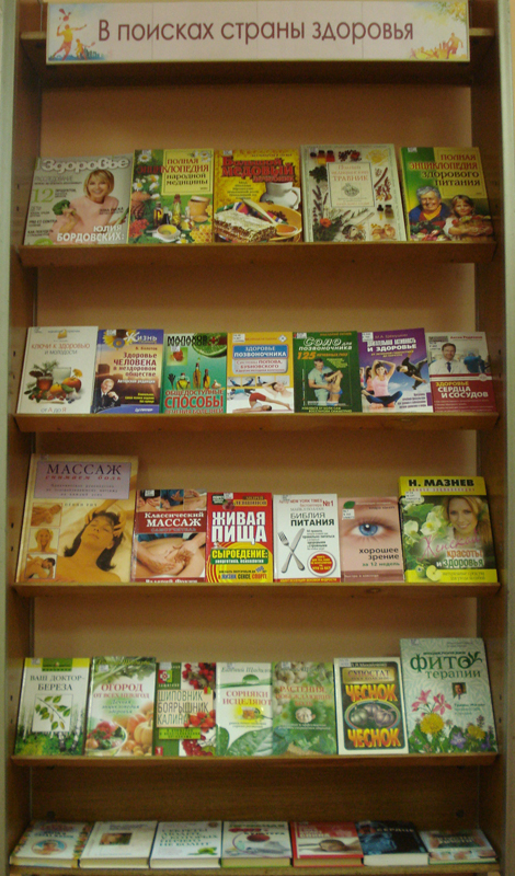 На выставке представлены книги о здоровье, о правильном питании, о воспитании детей здоровыми, о лечебной физической культуре, о гигиене и экологии человека и др.