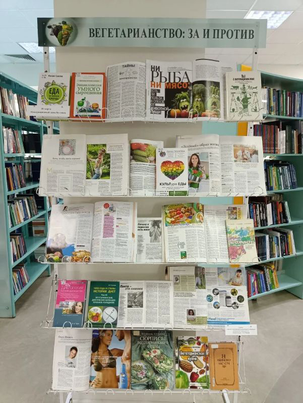 На выставке представлены книги и журнальные статьи, раскрывающие научные исследования и практические рекомендации по переходу на растительное питание, рецепты и советы по составлению меню для начинающих и опытных вегетарианцев.
