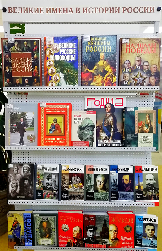 В Центре книги и чтения открыта выставка, рассказывающая о жизни и деятельности великих деятелей русской земли – от князя Олега и Александра Невского, Петра Великого и Михаила Кутузова до Георгия Жукова и Владимира Путина. Книги, представленные на выставке, привлекут внимание читателей, интересующихся историей Отечества.