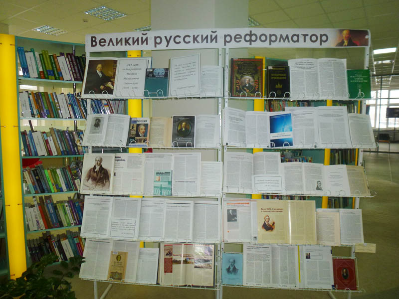 Кафедра социально-экономической и гуманитарной литературы12 января исполняется 245 лет со дня рождения Михаила Михайловича Сперанского. К этой памятной дате в универсальном читальном зале подготовлена книжная выставка.