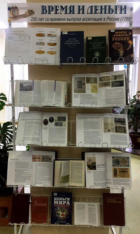 К 250-летию со времени выпуска первых ассигнаций в России в зале периодических изданий открыта выставка «Время и деньги».