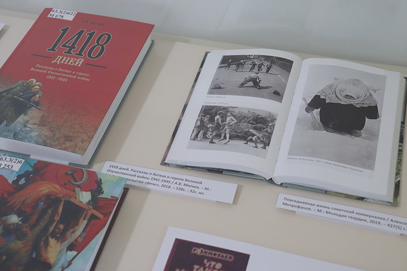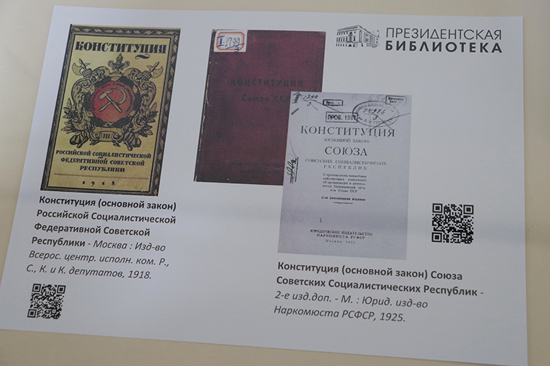 В витринах представлены книги из фондов Рязанской областной библиотеки имени Горького и Президентской библиотеки имени Б.Н. Ельцина.