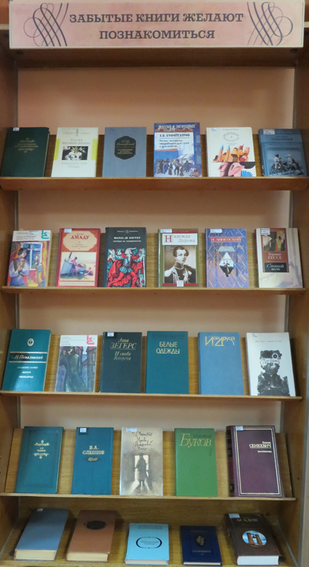 Кафедра абонемента (на Грибоедова 26\6) предлагает читателям обратиться к незаслуженно забытым книгам, имена авторов которых незаслуженно подзабыты нынешним поколением читателей. Это книги, которые откроют для вас много нового, интересного, мудрого. Эти произведения уже оценены по праву и критиками, и читателями во всем мире. Некоторые из них удостоились престижных литературных премий. Может быть, пришла пора их перечитать?