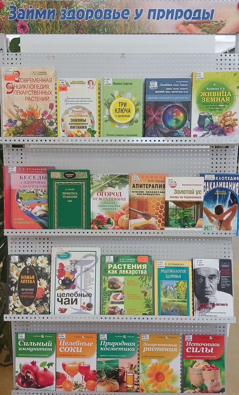 На выставке представлены иллюстрированные справочники и энциклопедии, которые знакомят с лекарственными растениями и способами их применения для лечения и предупреждения заболеваний.