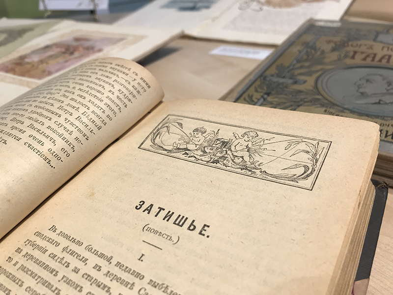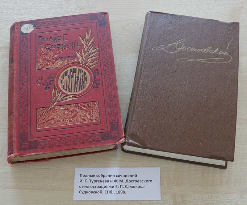 Приглашаем посетить выставку! Читатели увидят роскошные издания, оформленные художницей: роман в стихах «Евгений Онегин» Александра Пушкина (1918 г.), полное собрание сочинений Ивана Тургенева и Федора Достоевского (1898 г.), биографический очерк «Федор Петрович Гааз» Анатолия Кони (1904 г.) и др. Также привлекут внимание копии художественных открыток, рекламных афиш по рисункам Елены Самокиш-Судковской.