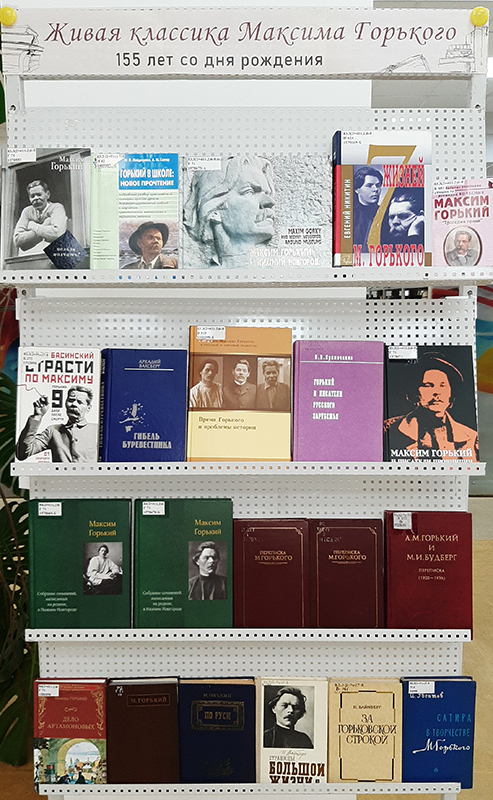 На выставке в центре книги и чтения представлены издания, рассказывающие о биографии и творческом пути писателя; воспоминания современников о нем, а также художественные произведения М. Горького: рассказы, повести, романы и пьесы.