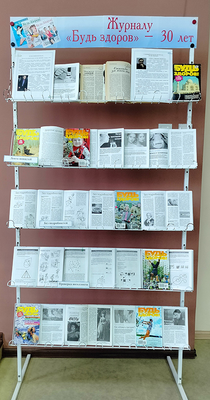 В зале периодических изданий работает выставка, приуроченная к юбилею журнала «Будь здоров», основанного в 1993 году.