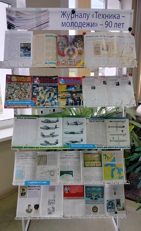 В зале периодических изданий работает выставка, приуроченная к юбилею журнала «Техника – молодёжи».