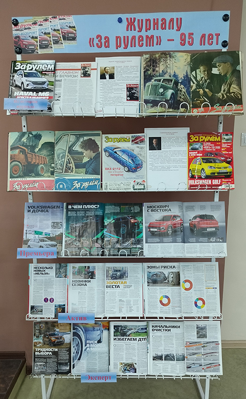 В зале периодических изданий работает выставка, приуроченная к юбилею журнала «За рулём», основанного в 1928 году.