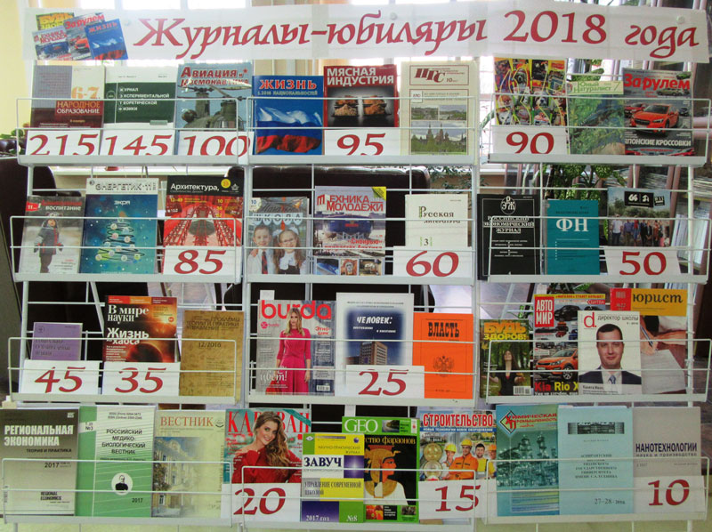 В 2018 году многие из журналов, поступающих в зал периодических изданий библиотеки имени Горького, отмечают свой юбилей.