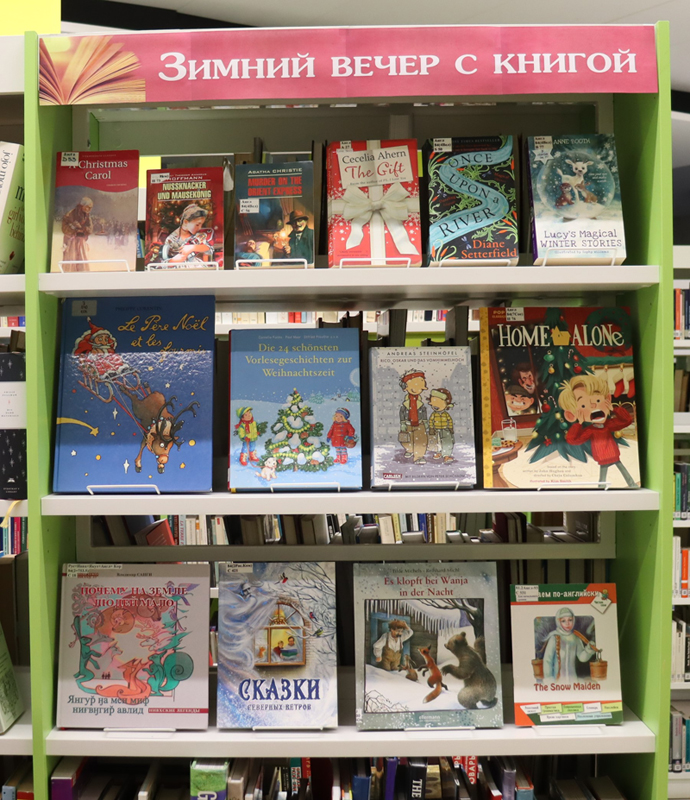 Мы собрали книги, которые согревают душу, увлекают сюжетом и дарят волшебное зимнее настроение. На выставке вас ждут трогательные рождественские повести, захватывающие детективы, романы для душевного отдыха, волшебные сказки для семейного чтения. Издания представлены на английском, немецком, французском языках и языках народов России.