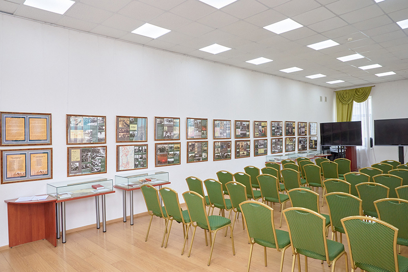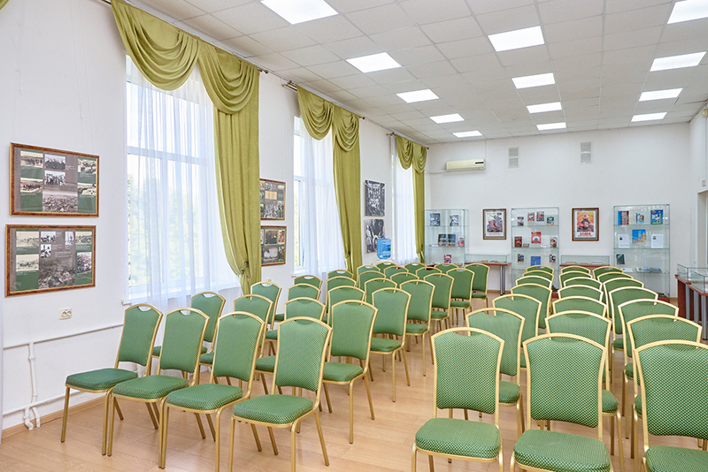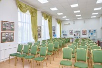 Малый конференц-зал расположен на третьем этаже основного корпуса. Предназначен для проведения встреч, лекций, круглых столов, презентаций.