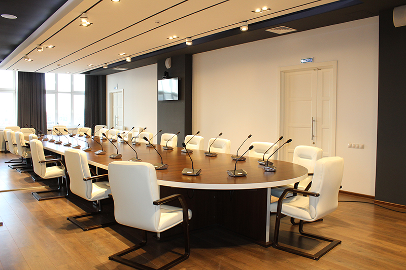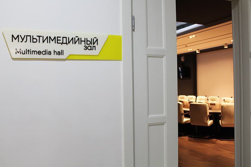 Мультимедийный зал расположен на третьем этаже первого корпуса. Предназначен для проведения веб-конференций, семинаров, круглых столов, встреч, лекций, презентаций.